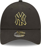 Officiële New Era Team Outline New York Yankees zwarte 9FORTY pet Gestructureerde kroon Terugslagklep Gebogen vizier Teamlogo op de voorkant New Era-badge aan de linkerkant 100% KATOEN