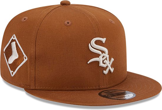 Side Patch Chicago White Sox 9FIFTY Cap Chicago White Sox logo on front Chicago White Sox sidepatch on right New Era Flag on left Structured crown Snapback Curved visor Dark...