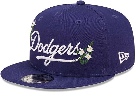 Officiële New Era Flower Wordmark LA Dodgers 9FIFTY petDodgers woordmerk met bloemen op voorkantDodgers zijvlak rechtsNew Era vlag linksGestructureerde kroonSnapbackPlat vizierGrijs vizier100% KATOENProduct ID: 60358099