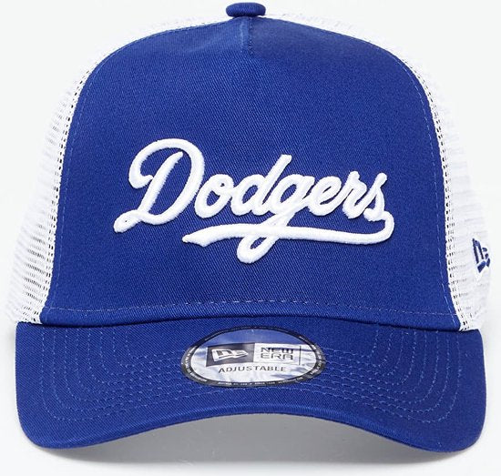 PRODUCT DETAILS Team Script LA Dodgers Trucker Cap LA Dodgers logo on front New Era Flag on left Structured crown Snapback Curved visor Mesh back and sides 100% COTTON